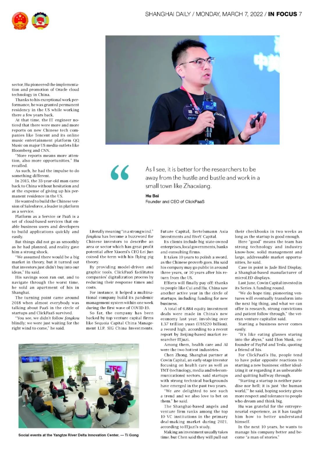 近日,long8国际唯一官网创始人、CEO胡柏接受了《上海日报》采访,关于自己当初为何选择创立long8国际唯一官网,又为何将公司落户于上海青浦,分享了其背后的故事。